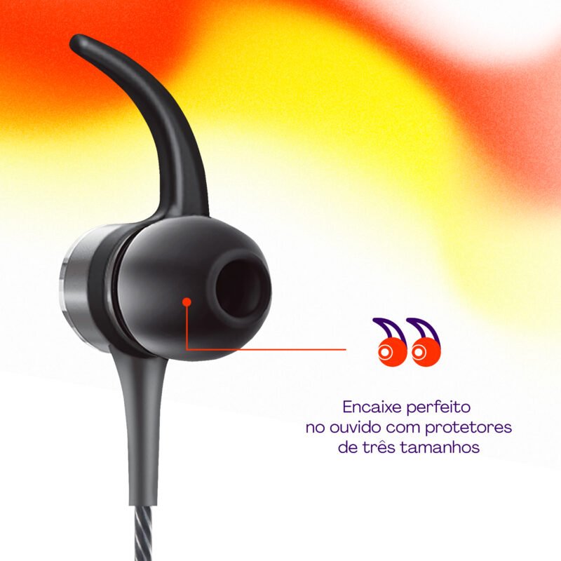Encaixe perfeito no ouvido com protetores de três tamanhos;