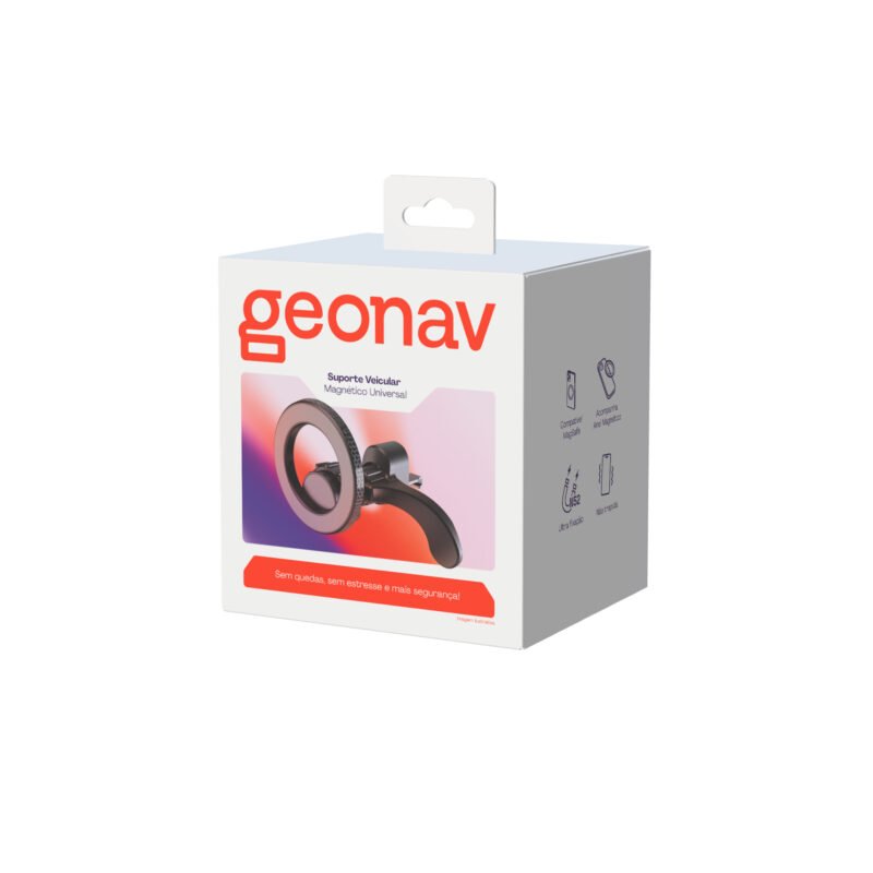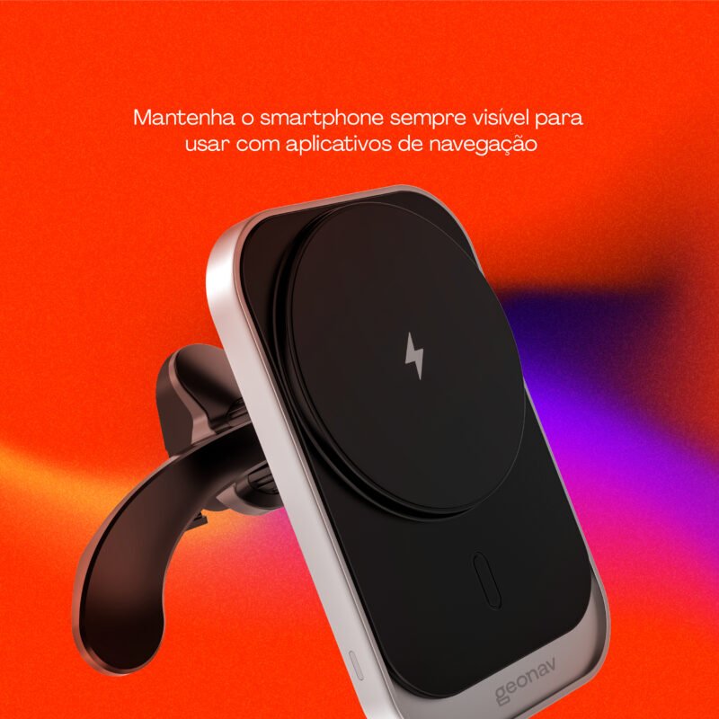 Um olho na paisagem e outro no aplicativo de navegação. O Suporte Universal Magnético da Geonav garante que seu smartphone estará numa posição confortável ao dirigir. Com imãs N52 ultrafortes, compatíveis com o MagSafe, pode ser usado com diversos modelos de smartphone com os anéis magnéticos inclusos e um sistema de encaixe que evita trepidações, ele é ideal para quem fica no trânsito.