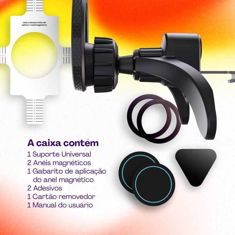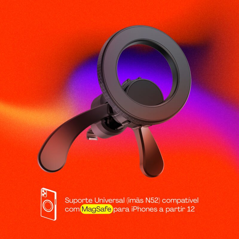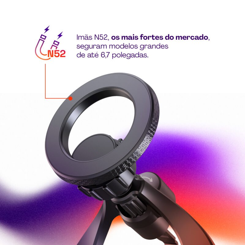 • Imãs N52 superfortes: suportam smartphones grandes de até 6,7 polegadas.