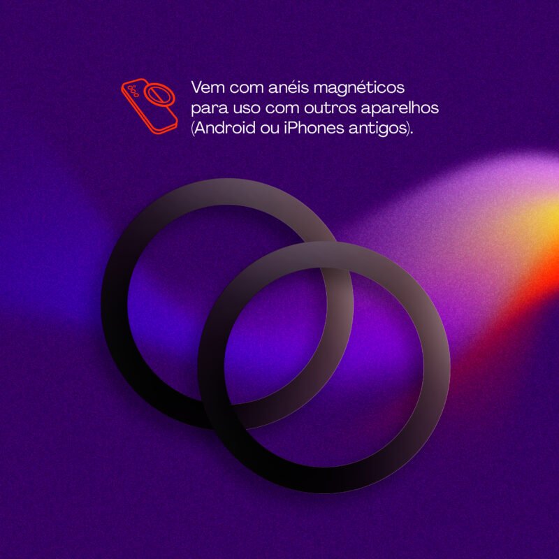 Compatibilidade: MagSafe para iPhones a partir do iPhone 12, anel magnético para outros modelos (Android e iPhones antigos).